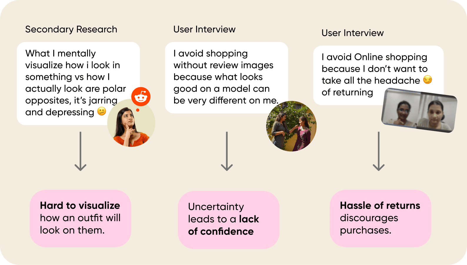 My goal was to understand how users make online clothing purchases and what challenges they face with fit and sizing.
