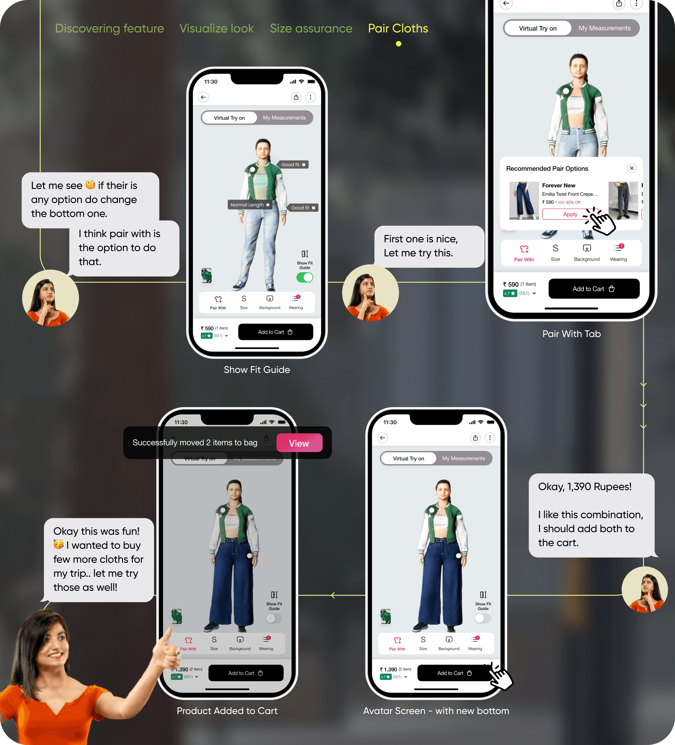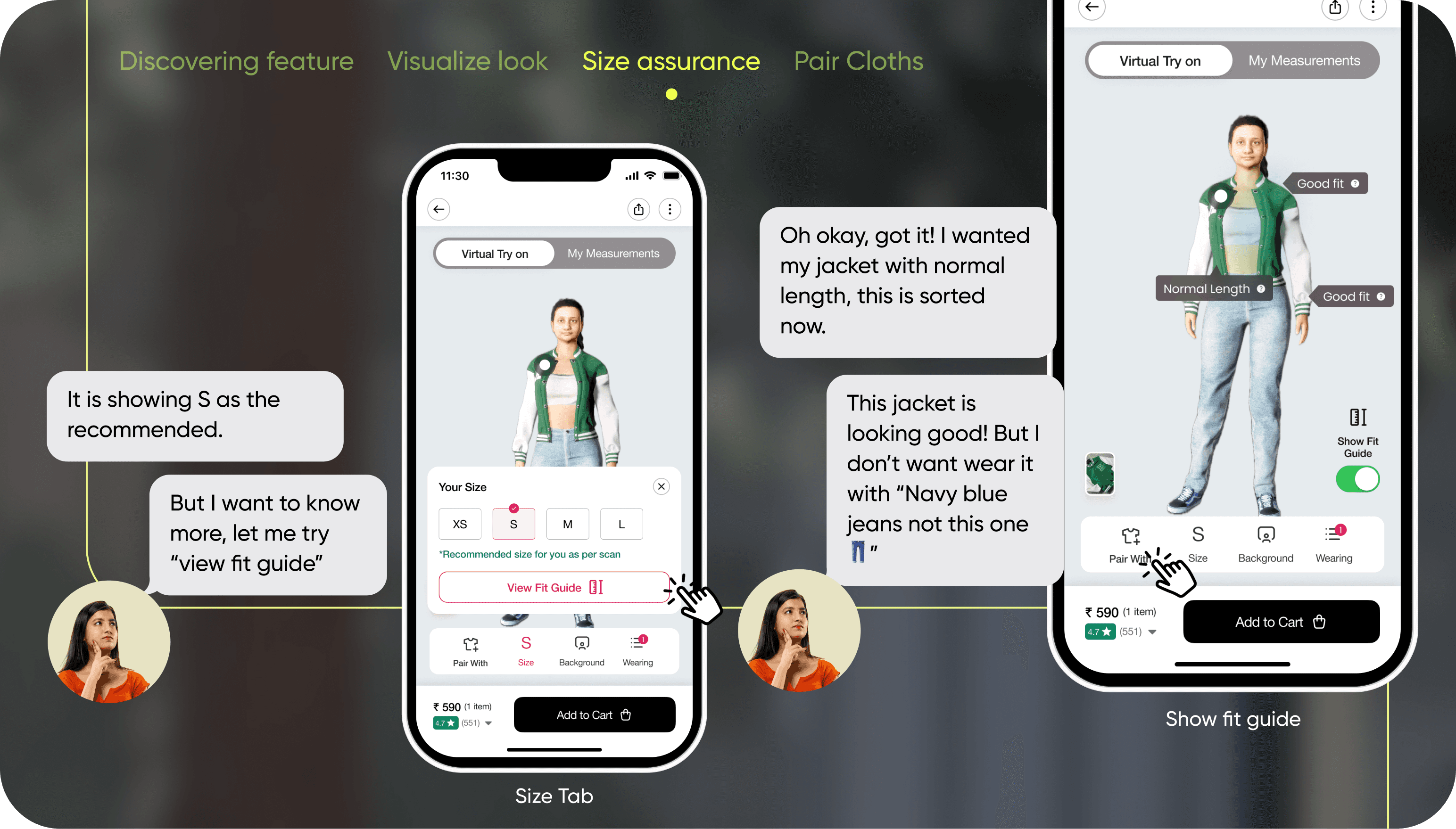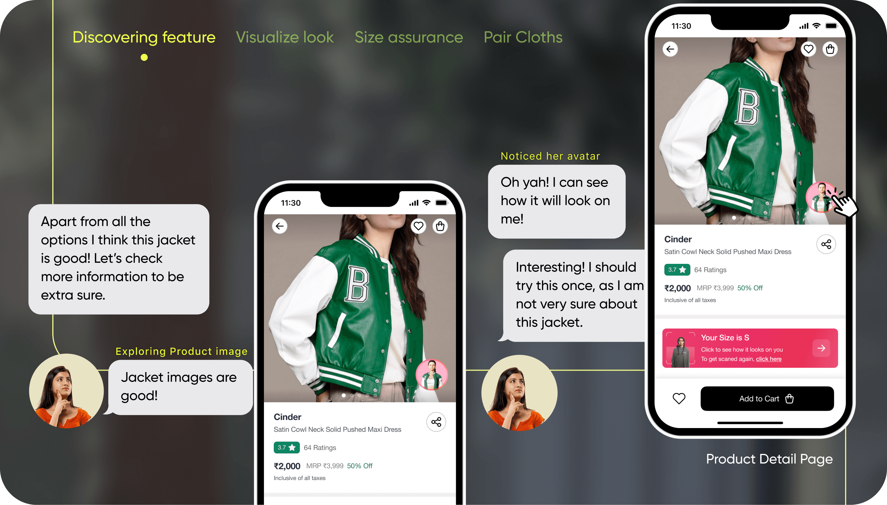 Users prefer online shopping for convenience but miss the confidence of trying on clothes in-store before buying. There’s a need to bring the offline shopping experience closer to an online one.