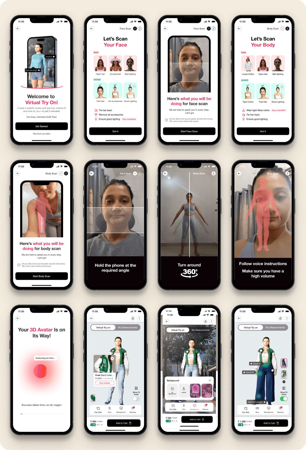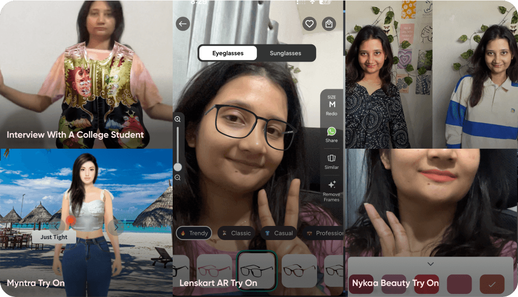 Goal was to Help online shoppers visualise fit + style through Virtual try on, reducing guesswork and boosting confidence.