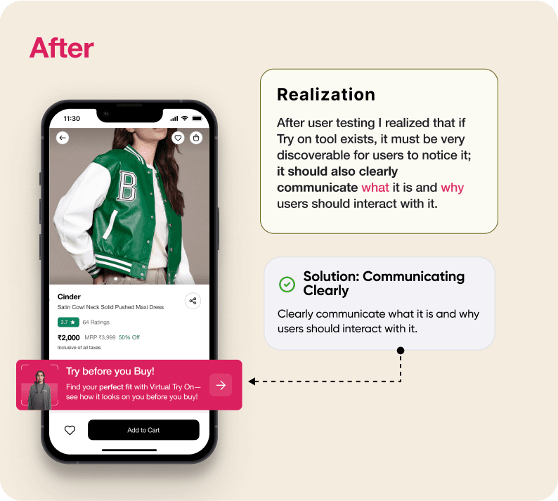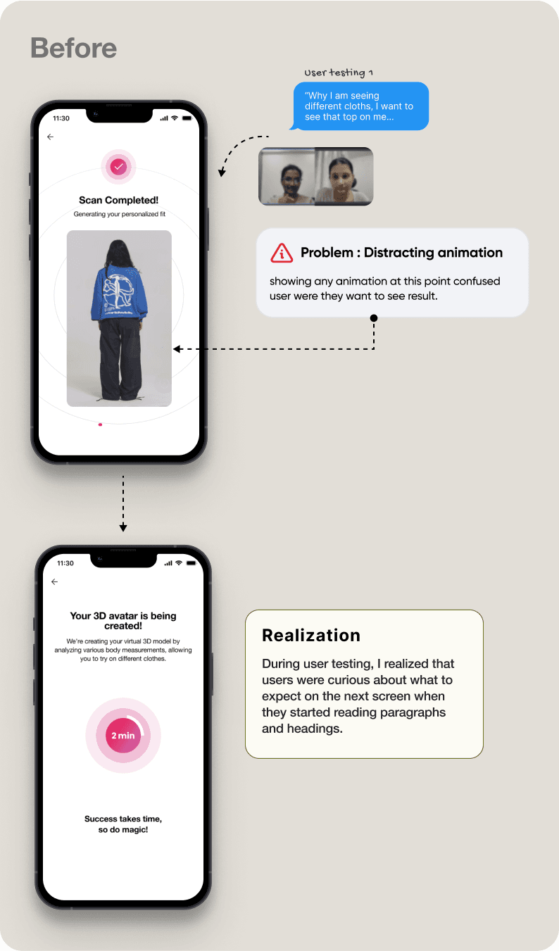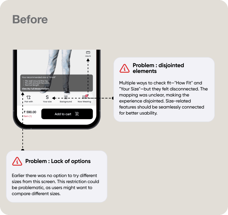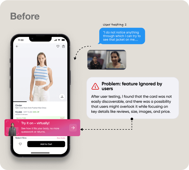 Since this was a new feature, users were unsure whether the system would provide precise results. Additionally, privacy concerns made them hesitant to proceed with the try-on experience.